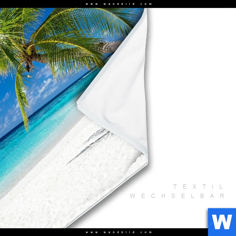 Wechselmotiv Textil | Weißer Strand & Kokospalme | Quadrat