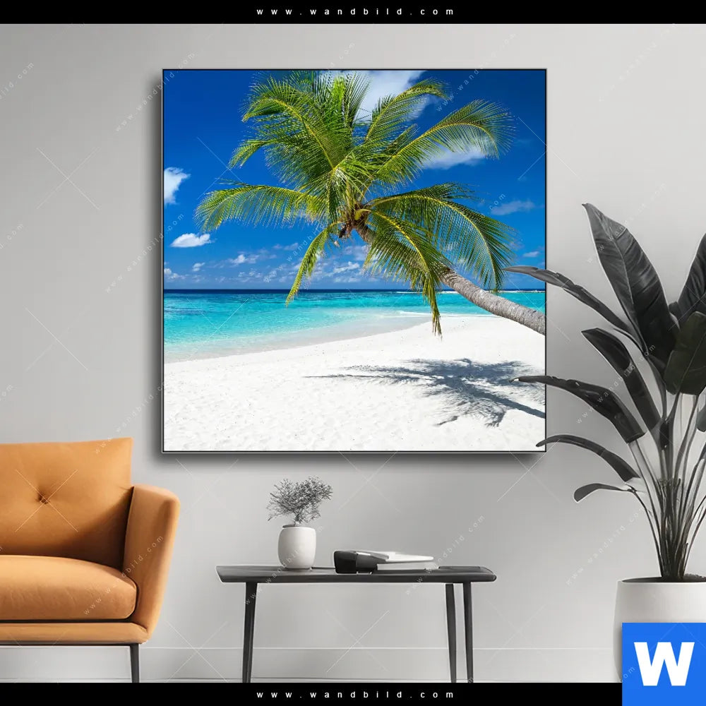 Wechselmotiv | Weißer Strand & Kokospalme | Quadrat