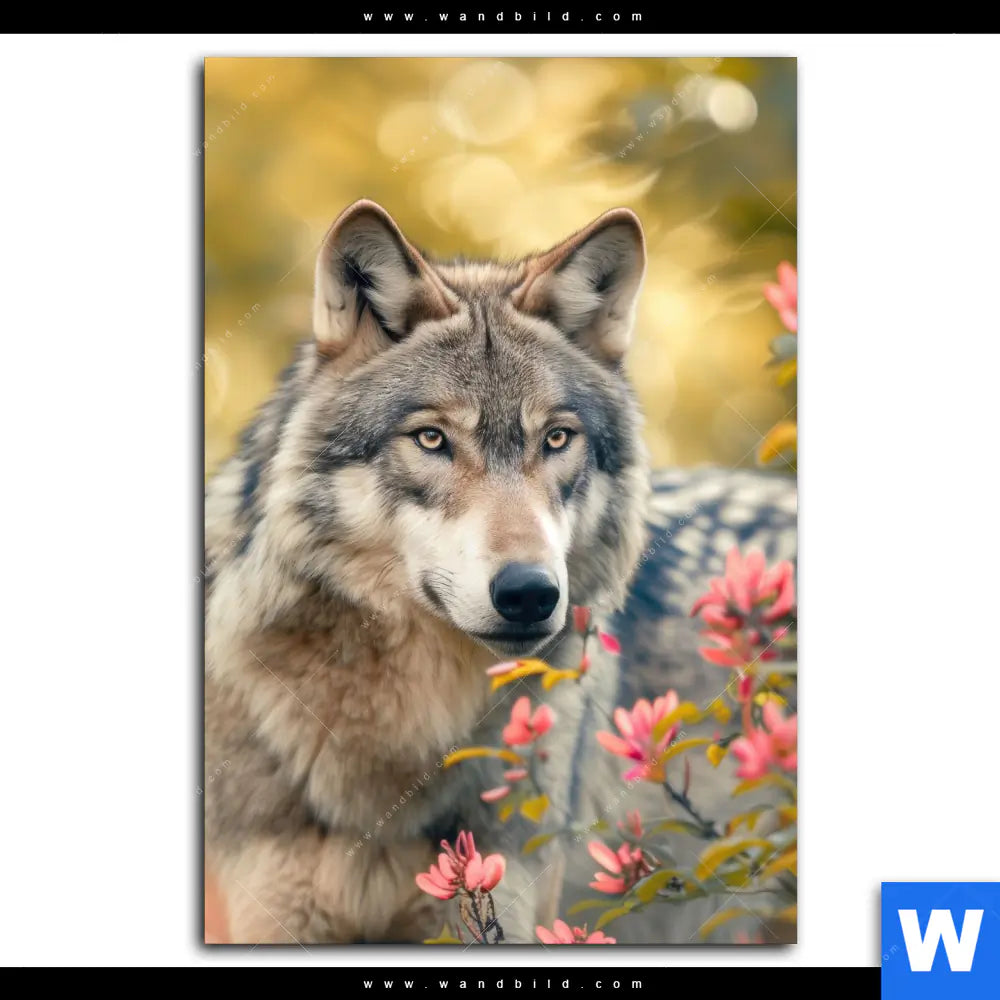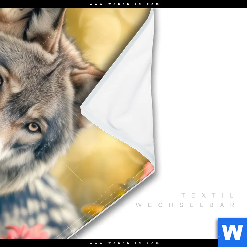 Wechselmotiv Textil | Wolfsblick im Frühling | Hochformat