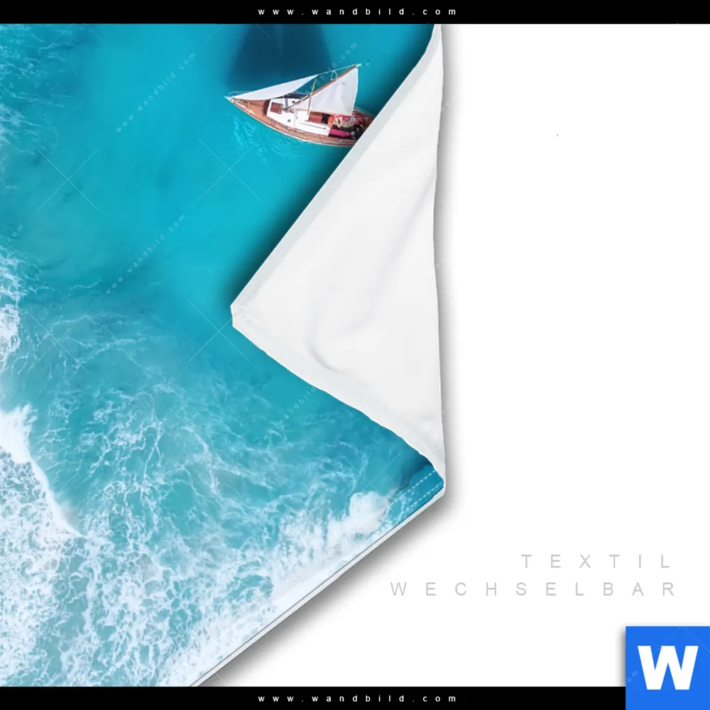 Wechselmotiv Textil | Yacht im Meer | Quadrat