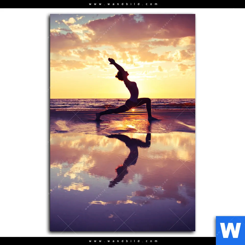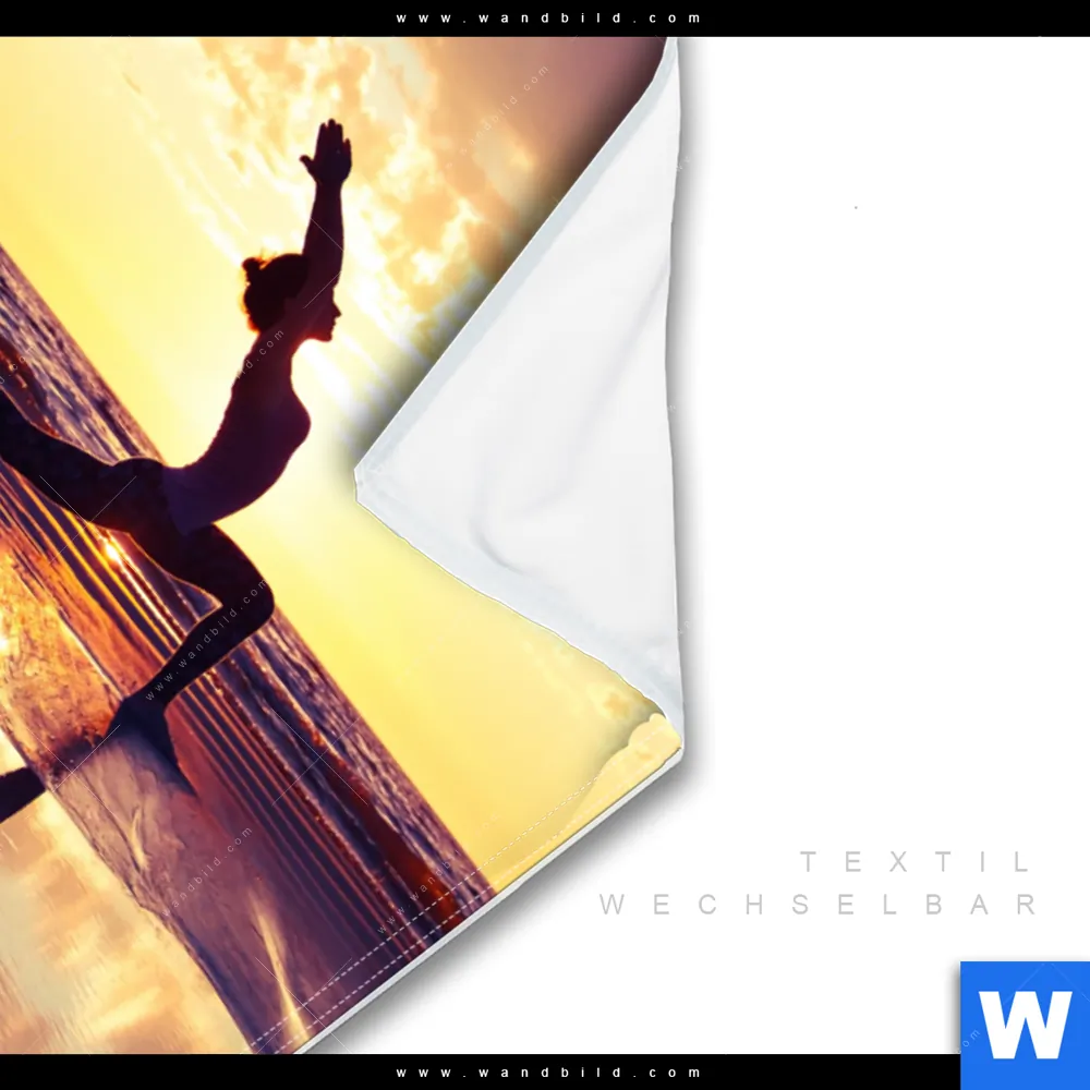 Wechselmotiv Textil | Yoga am lila Strand | Hochformat