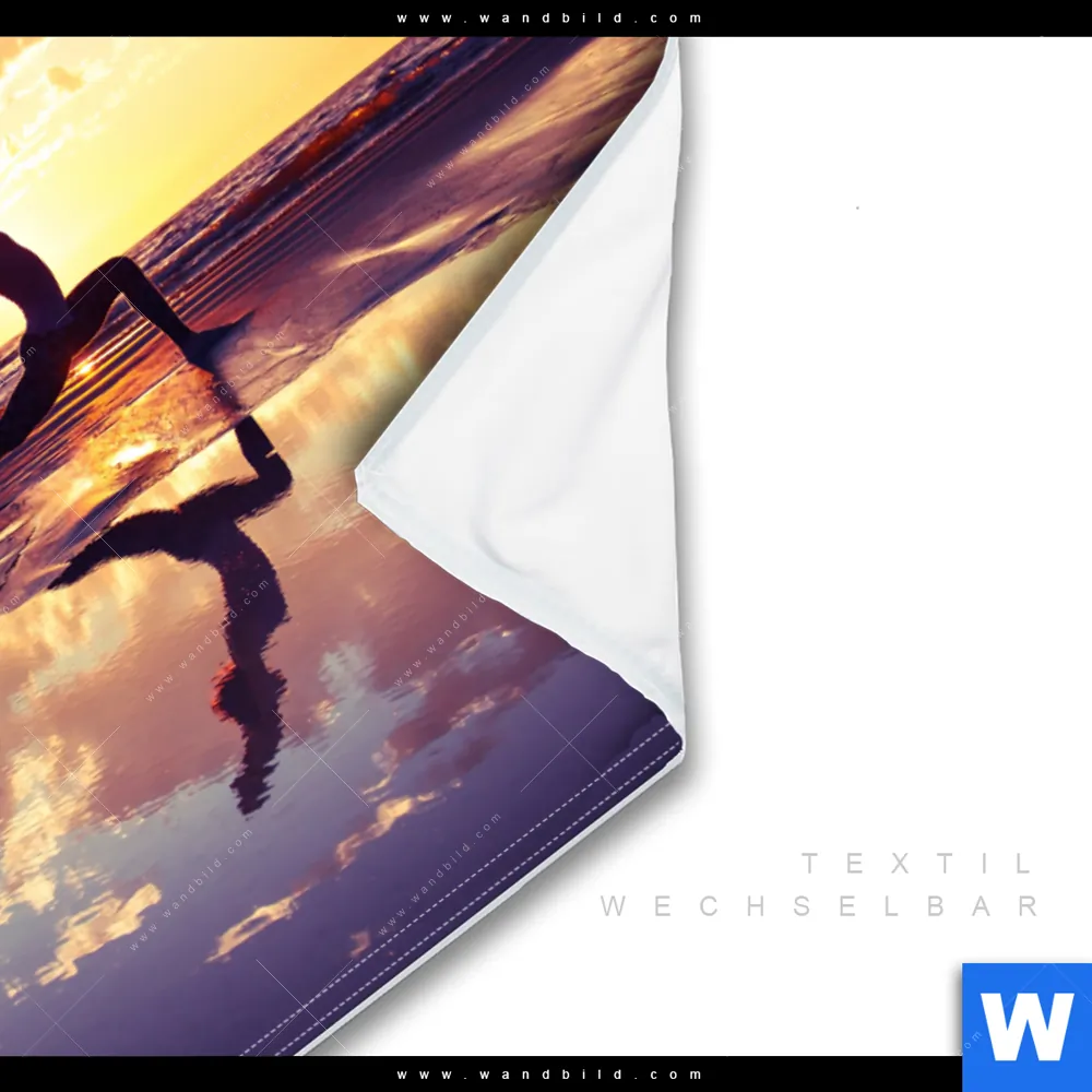 Wechselmotiv Textil | Yoga am lila Strand | Querformat