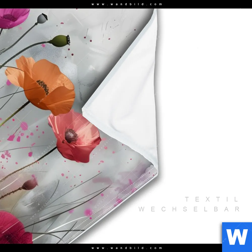 Wechselmotiv Textil | Zarte Mohnblumen im Wind | Hochformat