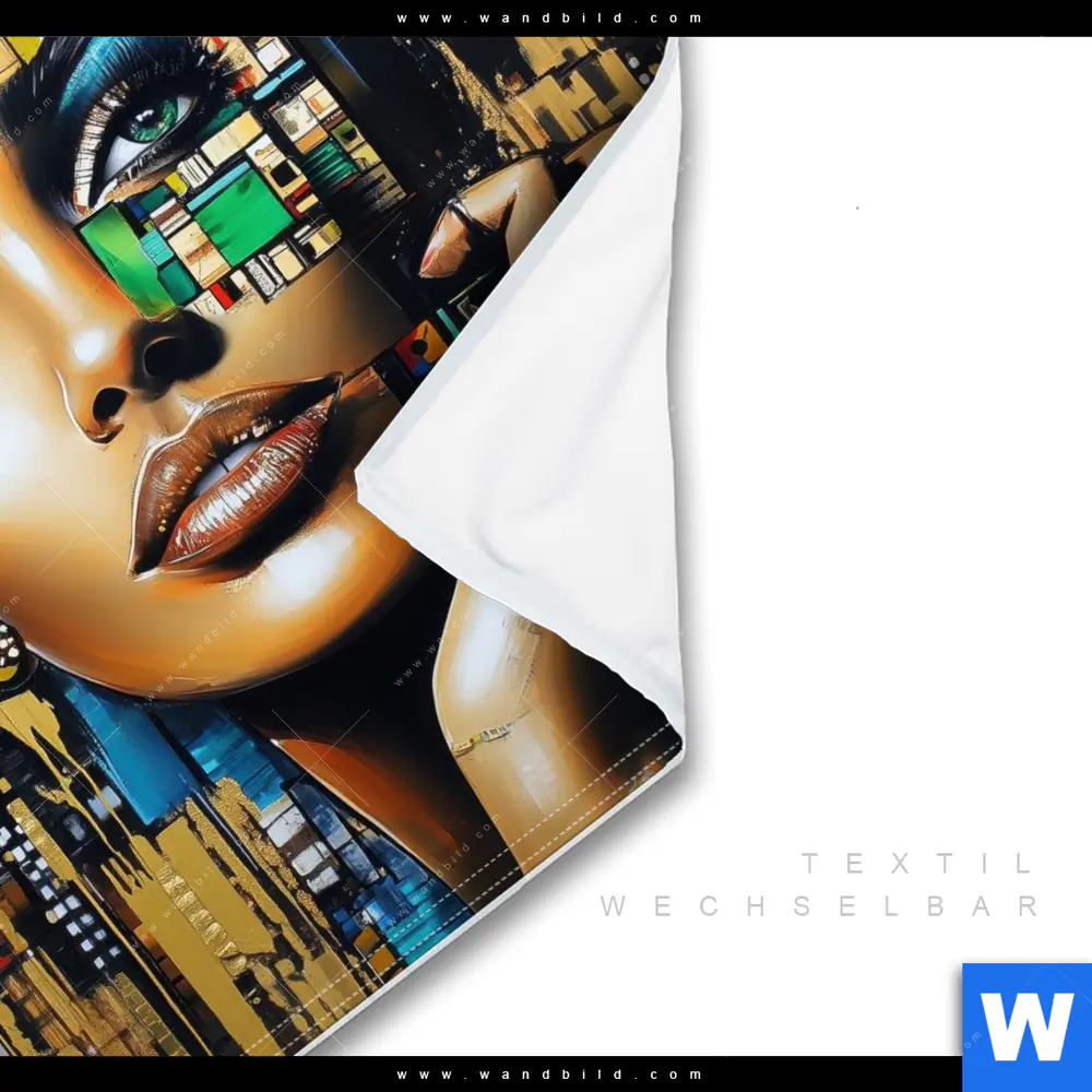 Wechselmotiv Textil | Zoe - Mosaikgesicht im Großstadtlicht | Quadrat